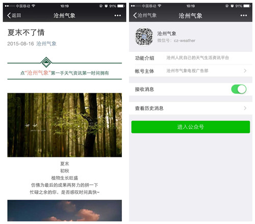 沧州气象官方微信公众号正式开通