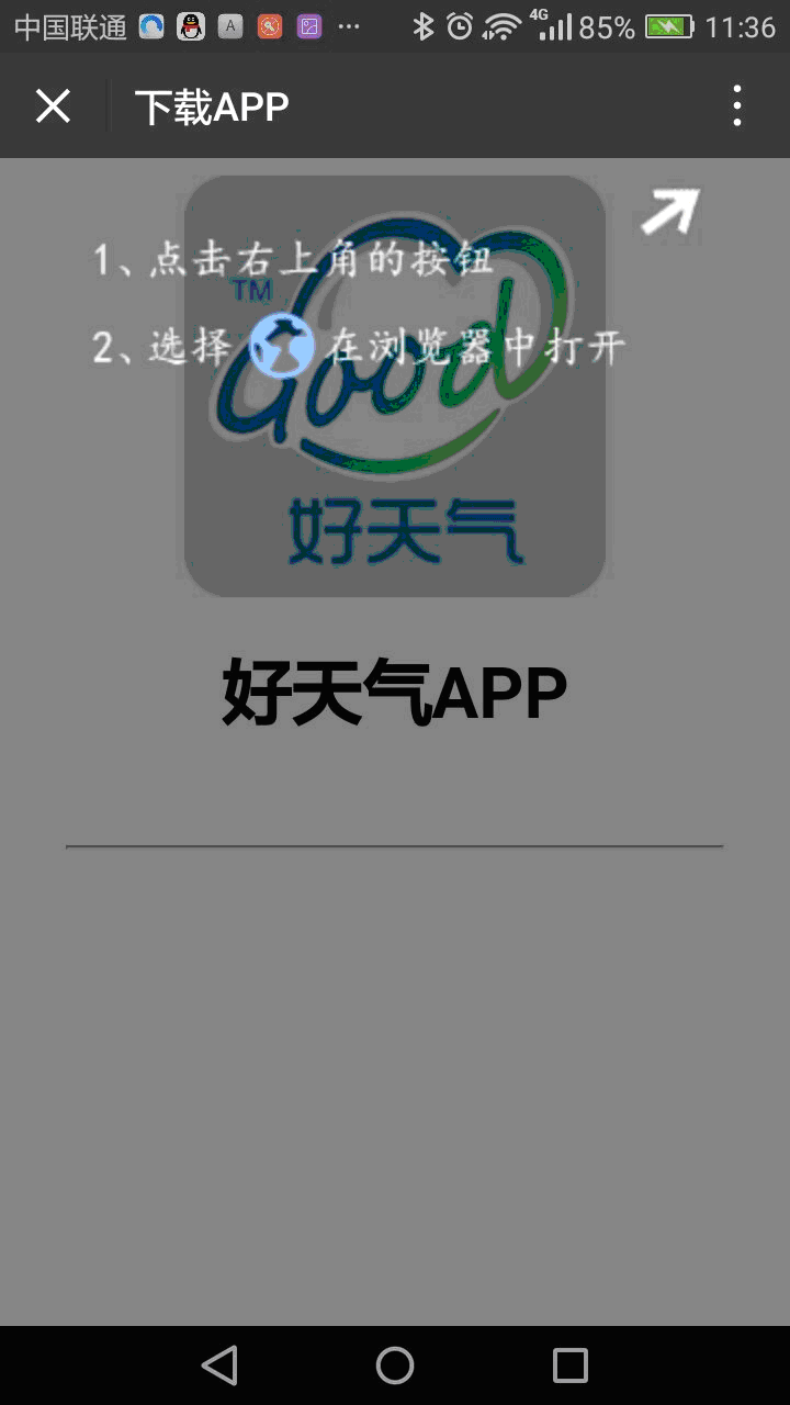 1、长按“好天气”二维码,获取下面右边画面,按画面指示下载安装继续操作。