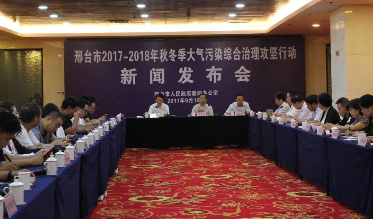 2017年9月15日上午,河北省邢台市政府组织召开全市2017-2018年秋冬季大气污染综合治理攻坚行动新闻发布会。新闻发布会由邢台市委宣传部副部长王胜伟主持,出席新闻发布会的有市政府常务副秘书长邢文全,市环保局、市发改委、市气象局等攻坚行动相关责任部门负责同志,受邀参加新闻发布会有中国新闻社、河北电视台等媒体。