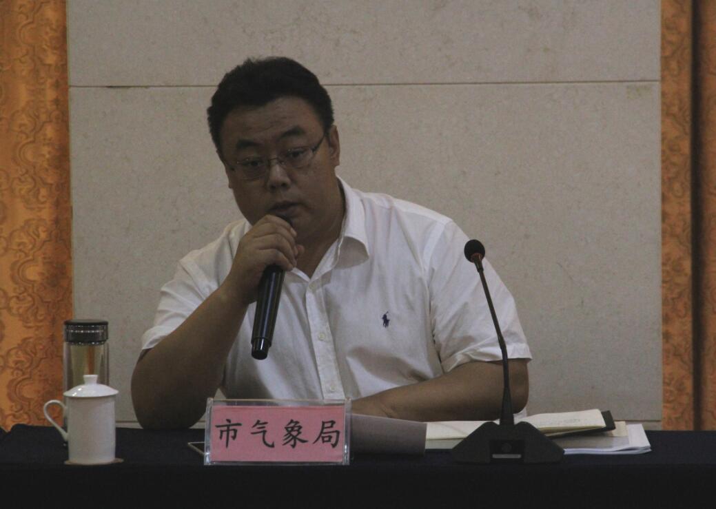 图为市气象局党组书记、局长郭艳岭回答记者提问