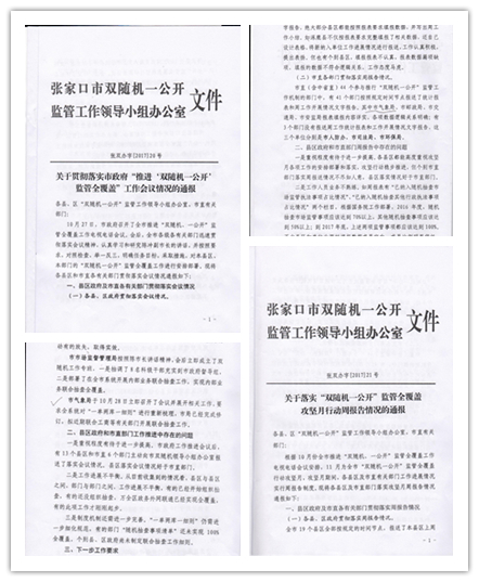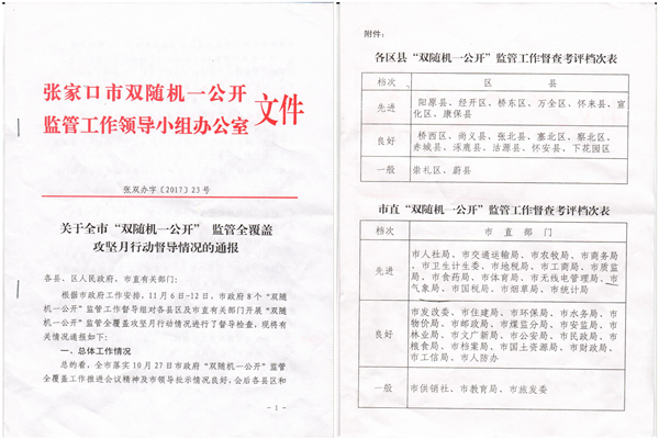 张家口:“双随机一公开”工作多次获表扬
