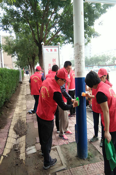 9月2日,张家口市气象局志愿者服务队再次组织活动,清洁维护纬一路2路公交站附近环境。 上午9时,志愿者们身穿志愿者统一着装,携带清洁工具对2路公交站牌、公交站附近的垃圾箱等公共设施开展了集中清洗;同时捡拾了站牌附近的纸屑杂物等垃圾,清除了周围的小广告。经过近两个小时的清洗,站牌卫生面貌焕然一新,以崭新的姿态展现在市民面前。 通过此次活动的开展,气象局志愿者们增强了志愿服务的意识,希望以此次活动为契机,实现志愿服务活动常态化,为创建文明城市,作出应有的贡献。